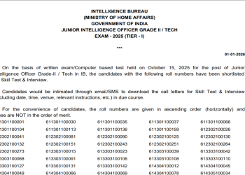 Read moreDetailsThe Ministry of Home Affairs has published the IB JIO Result 2025 India for the Junior Intelligence Officer Grade‑II/Technical Tier‑I...