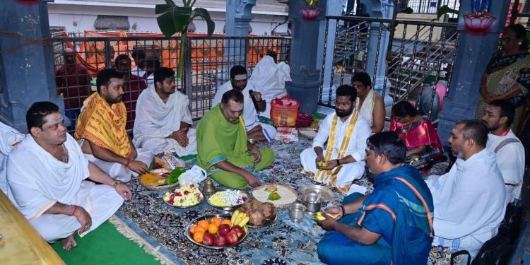 Special pujas were conducted in the presence of Executive Officer V.K. Seena Nayak and members of the donor family, including Leela Nageswari and her relatives. Chief Priest Lingambotla Durga Prasad and Assistant Priest Kota Prasad led the liturgies, assisted by other temple priests.