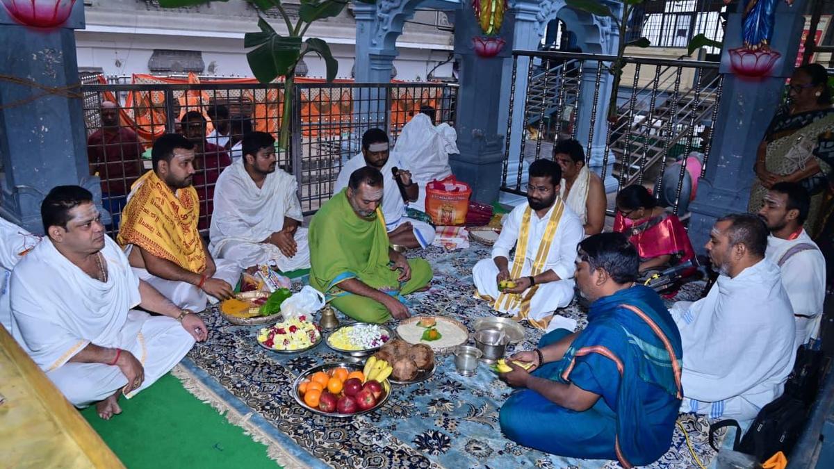 Special pujas were conducted in the presence of Executive Officer V.K. Seena Nayak and members of the donor family, including Leela Nageswari and her relatives. Chief Priest Lingambotla Durga Prasad and Assistant Priest Kota Prasad led the liturgies, assisted by other temple priests.