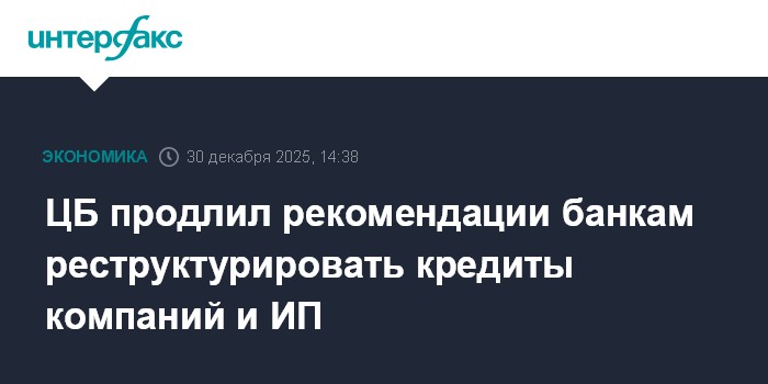 Moscow, 30 December — The Bank of Russia has extended recommendations to banks to restructure loans for corporate borrowers and individual entrepreneurs who have encountered temporary financial difficulties. The guidance, set out in a letter signed by First Deputy Chairman Dmitry Tulin and published on the regulator’s website, will remain in force until the end of the first half of 2026.