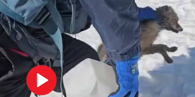 Indian mountaineers rescue baby fox trapped in plastic on snowy road