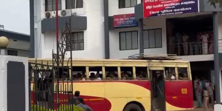 A KSRTC bus was driven into the Superintendent of Police (SP) office compound in Pathanamthitta on Tuesday evening after a heated argument among passengers threatened to escalate on board. The driver diverted the Thiruvananthapuram–Mundakayam service to the police compound to seek immediate intervention and prevent violence.