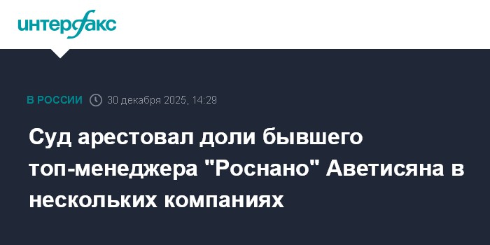 The court imposed asset restrictions on several companies in which Avetisyan holds stakes, concluding that freezing cash alone would not adequately protect Rosnano’s interests. Earlier measures in the same case had already frozen defendants’ bank funds, including 3.6 billion roubles tied to Avetisyan.