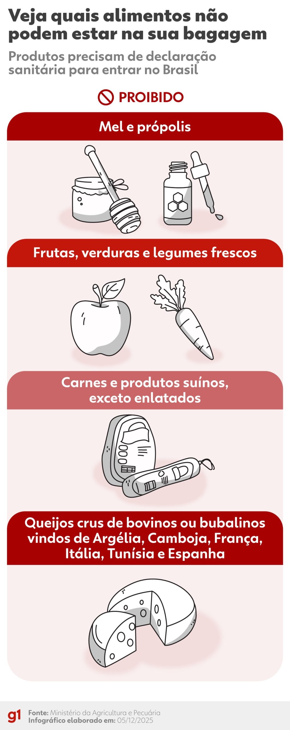 Travellers returning to Brazil with gastronomic souvenirs should be aware that several food items are subject to strict sanitary controls. Brazilian authorities routinely inspect baggage at entry points and may seize or destroy products that lack the required documentation. The most commonly affected items include honey, certain imported cheeses, fresh fruit and derivatives of pork, although commercially canned pork products are usually exempt from a blanket ban.
