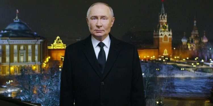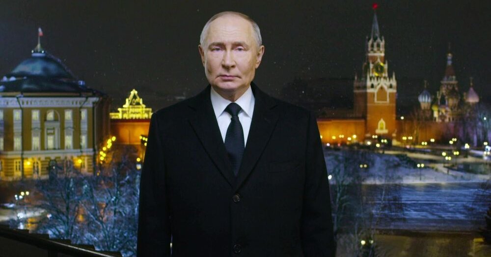 - President Vladimir Putin recorded his New Year greeting from the Kremlin, broadcast to all regions before local midnight.