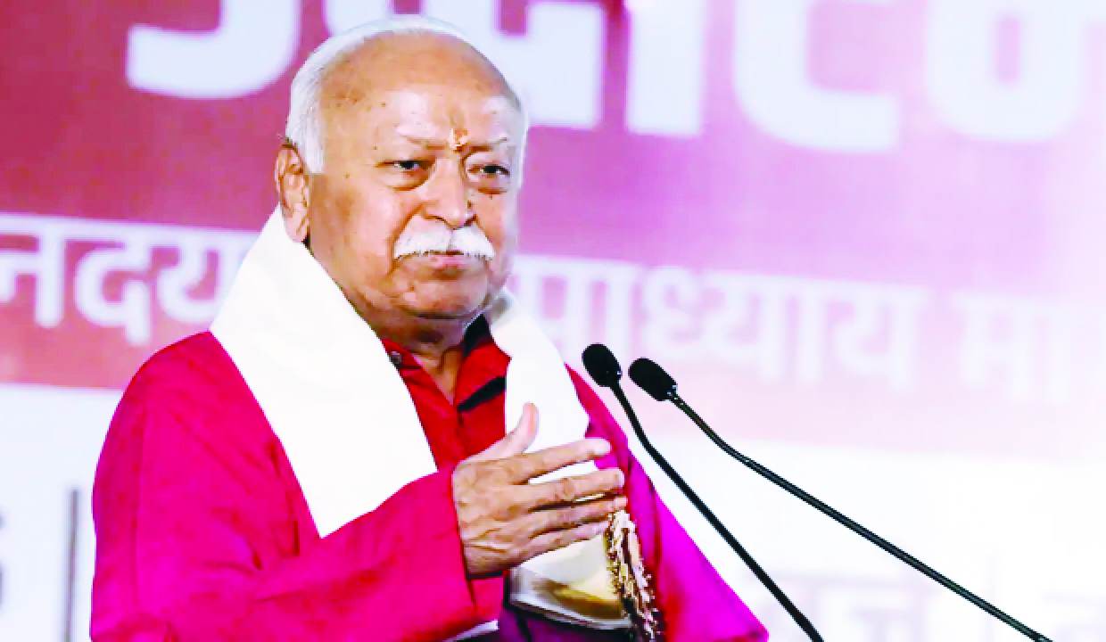 - RSS chief Mohan Bhagwat urged Indians to rise above caste, wealth and language divisions and treat everyone as their own.