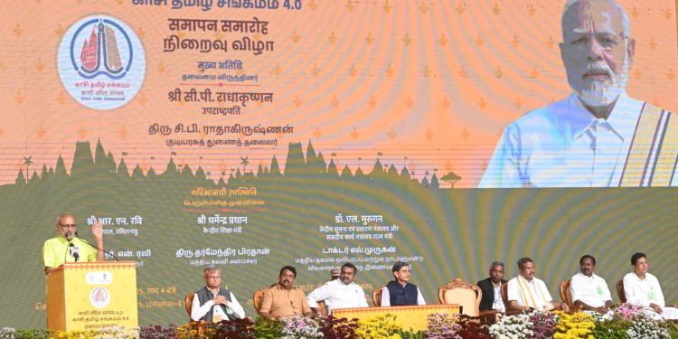 Addressing the valedictory function of Kashi Tamil Sangamam 4.0, Mr Radhakrishnan commended Prime Minister Narendra Modi for elevating Tamil language and heritage on the global stage. He said the Sangamam had underscored the civilisational arc linking the two holy towns and reflected India’s shared cultural values across regions.